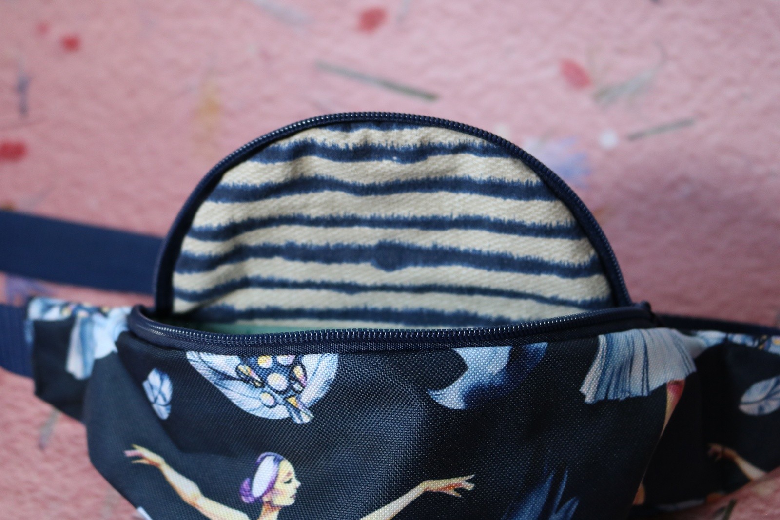Nerka składa się z dwóch warstw. Pierwsza to poliester wodoodporny, którą widzisz na zewnątrz. To ona nadaje charakter nerce Druga warstwa to podszewka wykonana z tkanin w idei upcyklingu – dałyśmy im drugie życie. To właśnie w tej warstwie znajdziesz także wszytą kieszonkę zamykaną na zamek.
