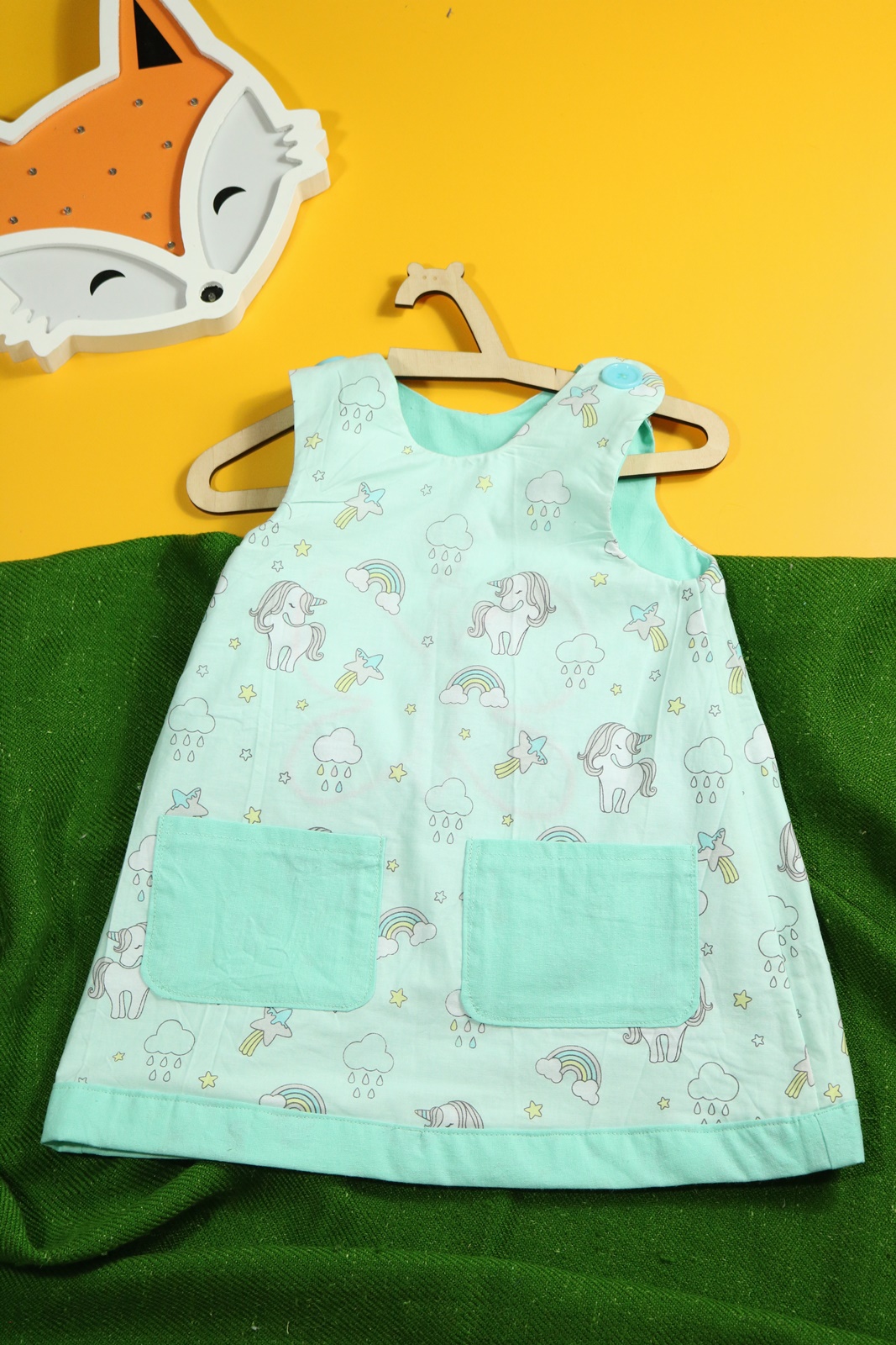 Dwustronna sukienka dla małych elegantek, które lubią się stroić lub małych brudasów, które szybko brudzą sukienki – wtedy można przewrócić ją na drugą stronę i nic nie zepsuje humoru stroskanej Mamie