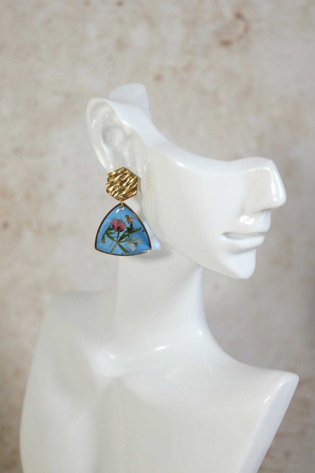 Zostały zawieszone na biglach typu sztyfty ze stali chirurgicznej w kolorze złotym (idealnej dla osób uczulonych na stopy metali, nikiel, a nawet srebro). Całość kolczyka wykonana ze stali chirurgicznej.