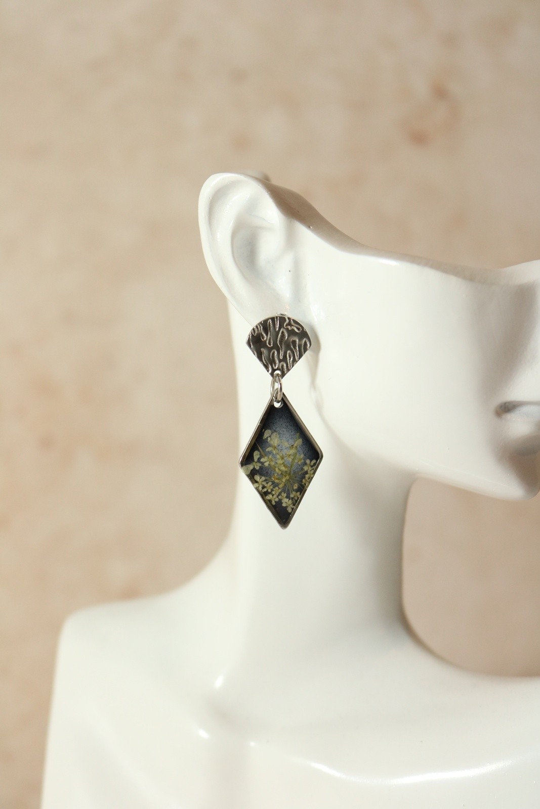 Zostały zawieszone na biglach typu wkrętki ze stali chirurgicznej w kolorze srebrnym (idealnej dla osób uczulonych na stopy metali, nikiel, a nawet srebro). Całość kolczyka wykonana ze stali chirurgicznej.