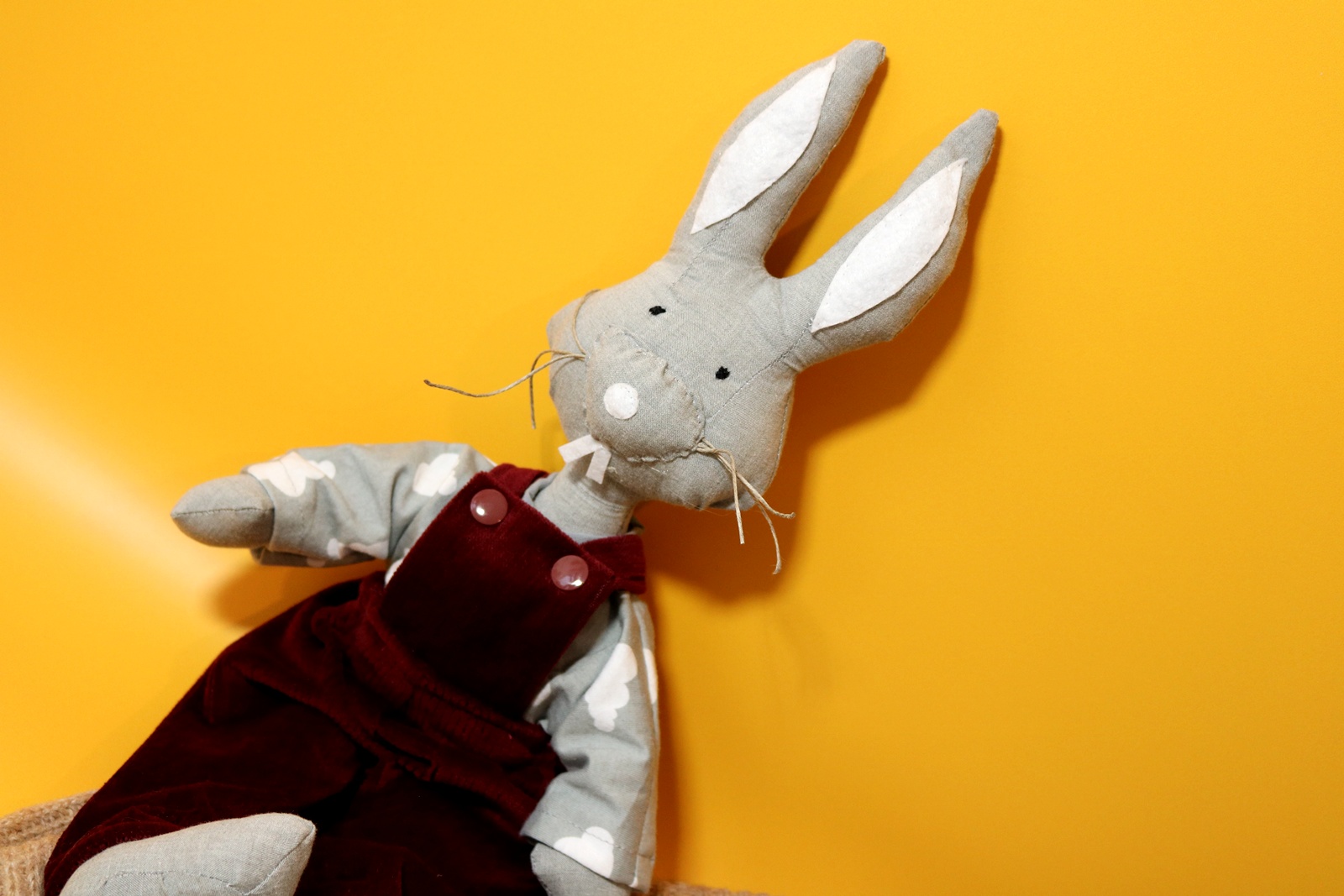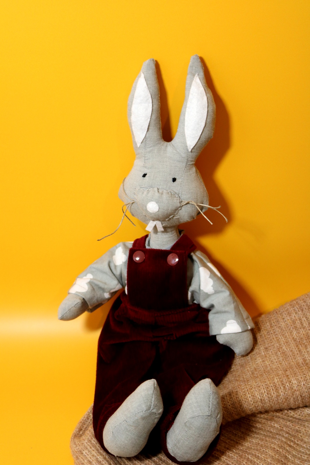 Królik Przemek jest uszyty z lnu z dodatkiem bawełny. Wypełniony granulatem sylikonowym, antyalergicznym, którego sprężystość gwarantuje brak zbijania się w środku grudek, nawet po wypraniu.