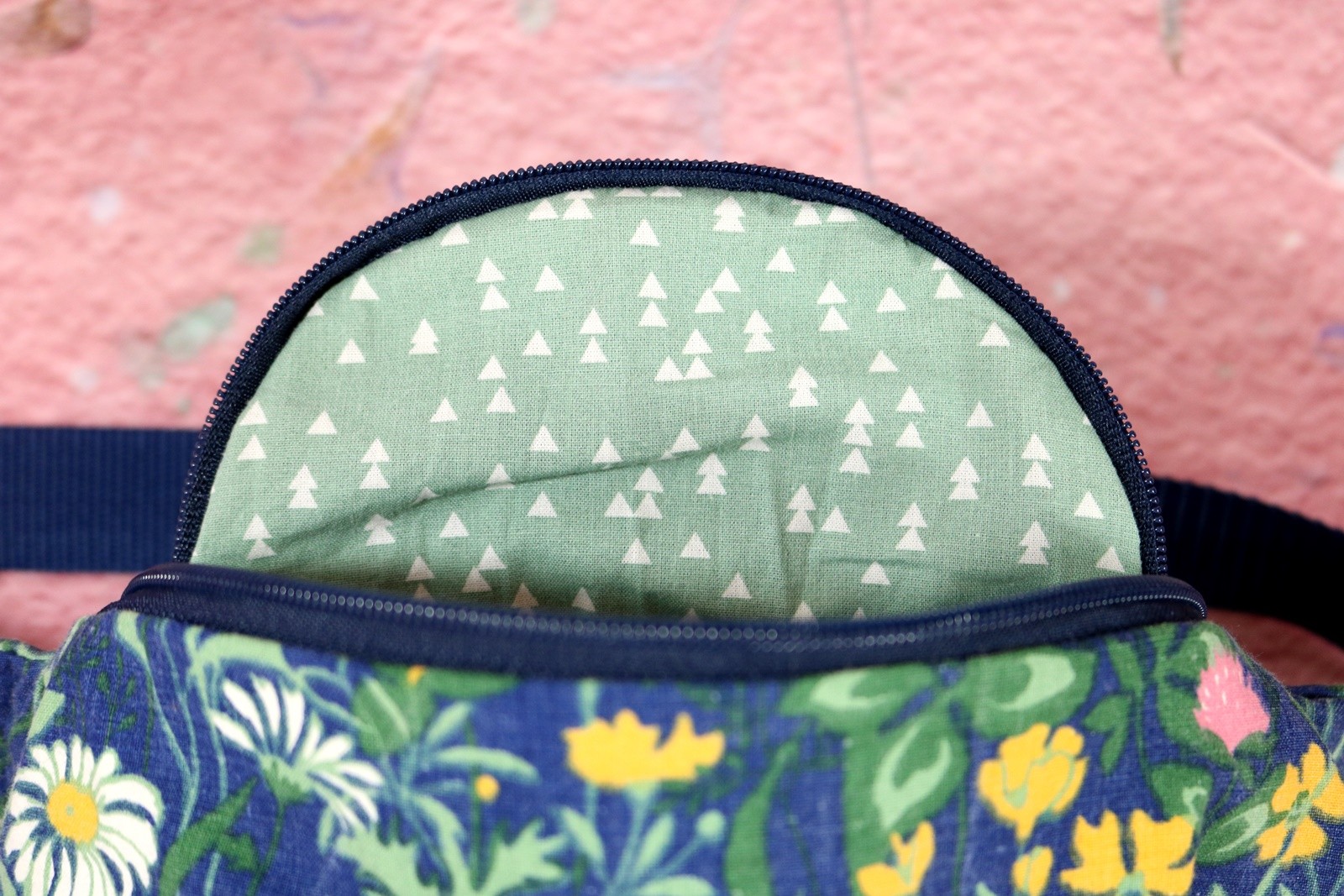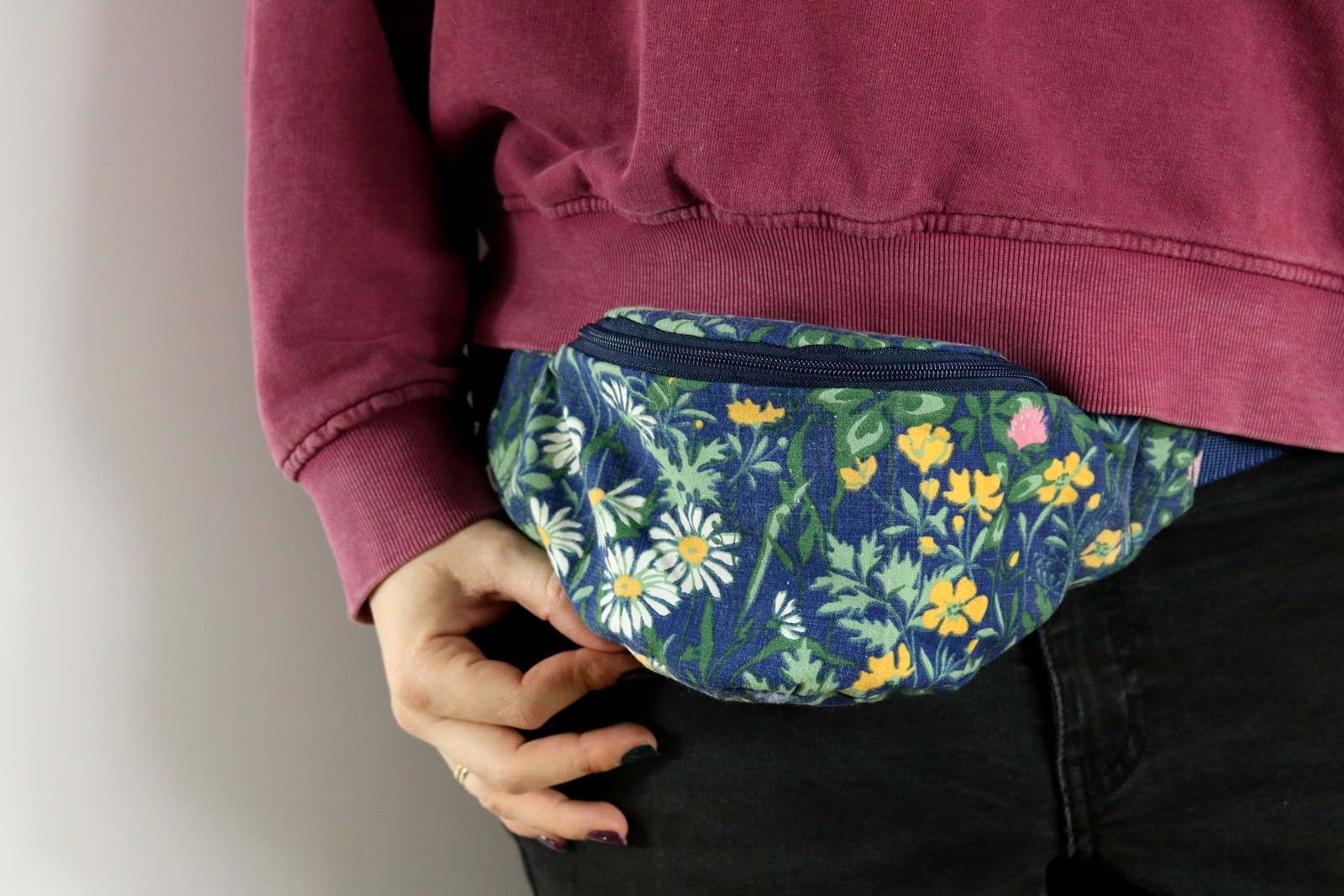 Nerka składa się z trzech warstw. Pierwsza to bawełna, którą widzisz na zewnątrz. To ona nadaje charakter nerce ? Kolejna warstwa to wodoodporny ortalion, który ochroni rzeczy znajdujące się wewnątrz przed wilgocią. Trzecia warstwa to podszewka wykonana z tkanin w idei upcyklingu – dałyśmy im drugie życie. To właśnie w tej warstwie znajdziesz także wszytą kieszonkę zamykaną na zamek.