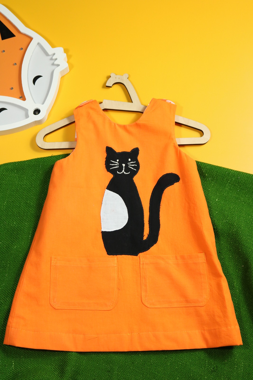 Pomarańczowa sukienka dwustronna z kotkiem (86 cm)