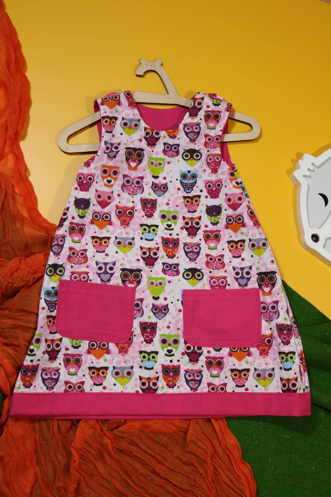 Dwustronna sukienka dla małych elegantek, które lubią się stroić lub małych brudasów, które szybko brudzą sukienki – wtedy można przewrócić ją na drugą stronę i nic nie zepsuje humoru stroskanej Mamie
