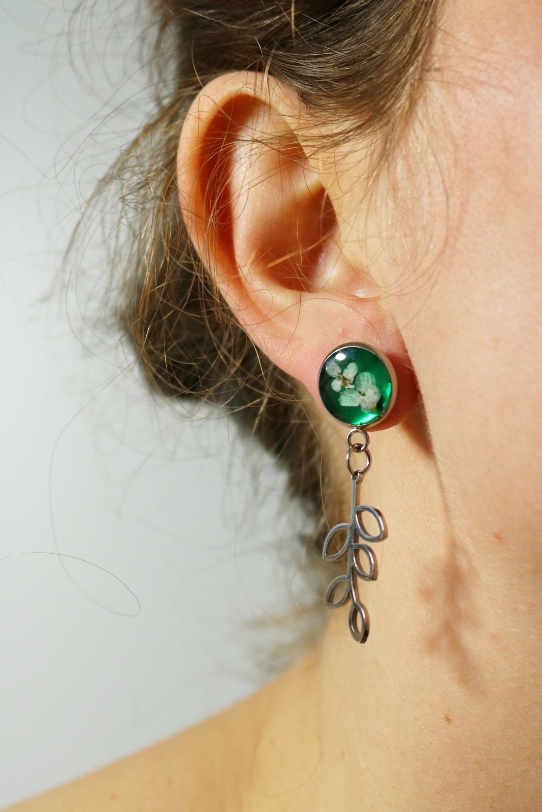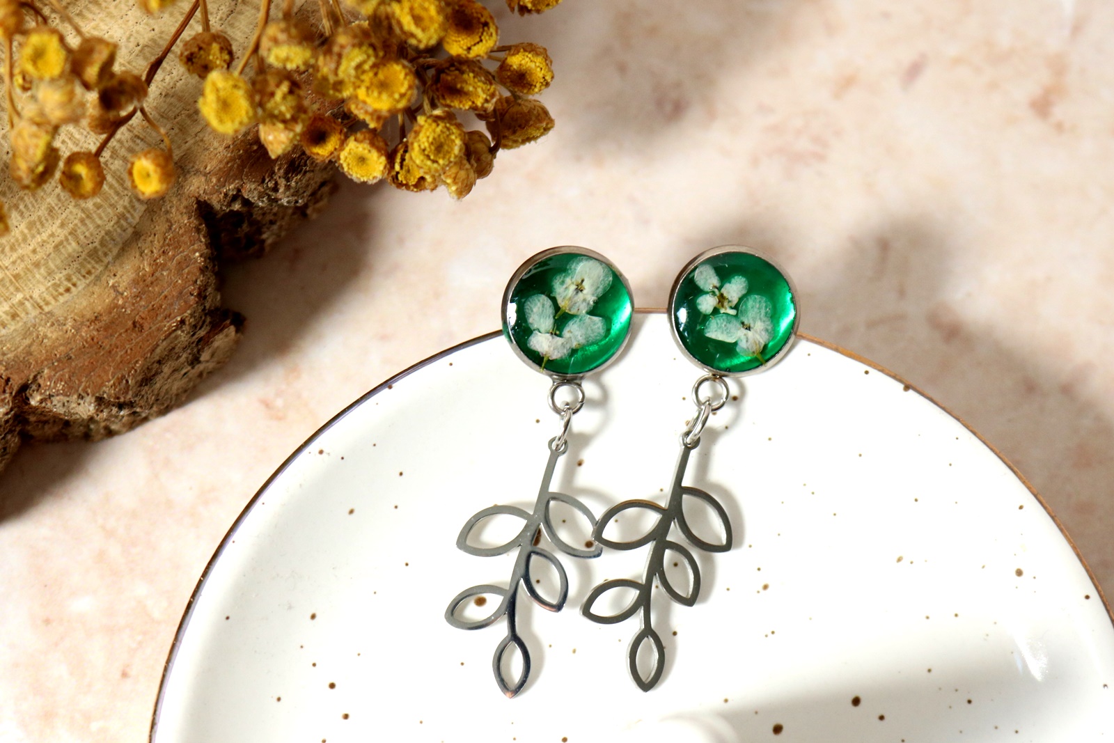 Każdą parę kolczyków wykonałam w pojedynczym egzemplarzu. Mogę wykonać podobne, ale nigdy takie same – każdy zasuszony kwiat różni się od siebie.