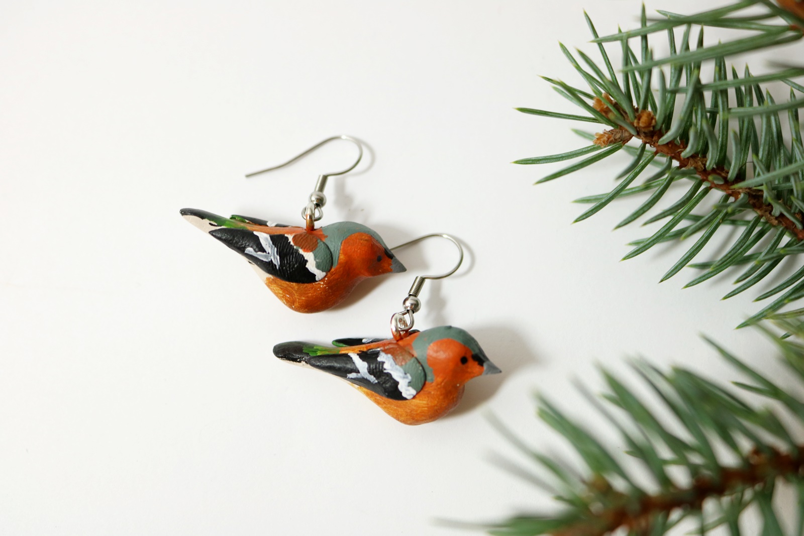 Zięba zwyczajna to ptak występujący na terenie Polski. Seria „Ptaki polskie”, to własnoręcznie wykonane ptaszki inspirowane ptakami żyjącymi na terenie naszego kraju. Ich mała skala rozmiaru sprawia, że kolczyki są delikatne, ale zauważalne.